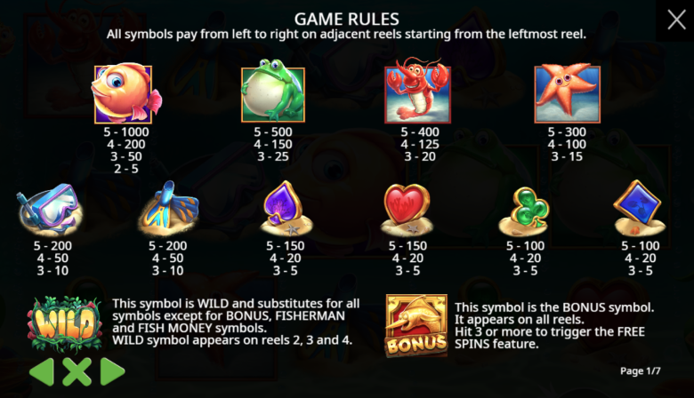 | Рыба (жёлтая) | 2 – x0.25 3 – x2.50 4 – x10.00 5 – x50.00 |